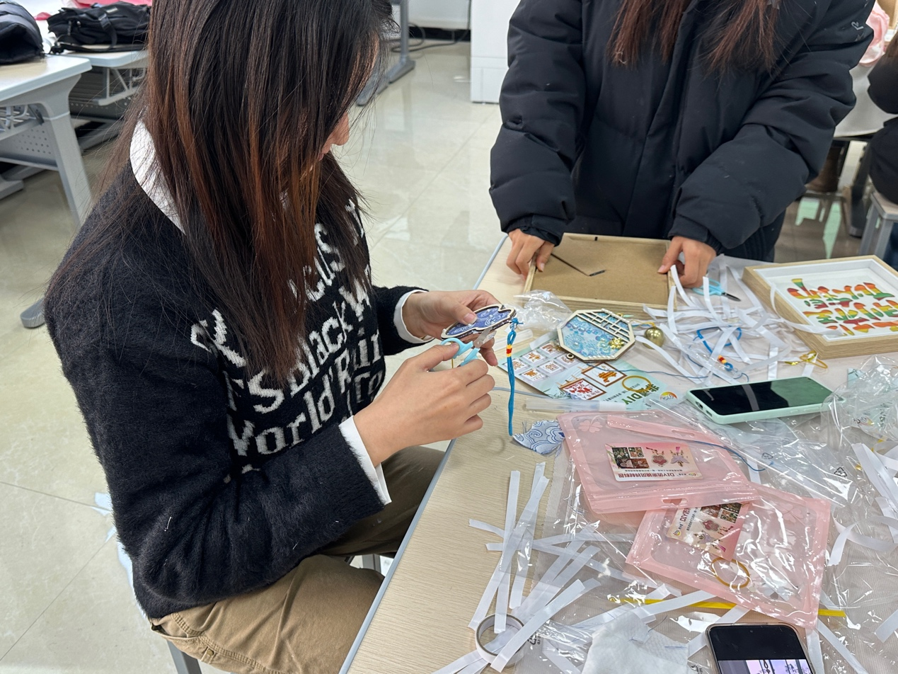 本次活动围绕非物质文化遗产实践体验展开。同学们亲手尝试了竹编画、风铃制作等项目,通过经纬交织、组合构件的动手过程,亲身感受传统技艺的细致与匠心。沉浸式的操作让抽象的文化变得具体可感,使非物质文化遗产在体验中得以生动传承。