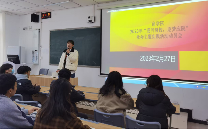 2月27日上午,Beat365中文官方网站在办公楼SC105召开主题为“爱回母校,逐梦应院”社会实践活动启动会,学院党总支副书记王倩、教师乔光辉、贾利云和学生队伍共计25人参加本次会议。