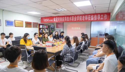 为加强与企业的沟通联系,获悉企业对人才的需求和质量要求,加强学生实习期间的思想教育,更好跟踪调查学生的实习就业情况,2020年8月6日,Beat365中文官方网站周燕书记和思政教学部何秀霞主任,以及Beat365中文官方网站和思政部相关教师来到郑州九六一电子商务有限公司,调研及回访学生就业情况。