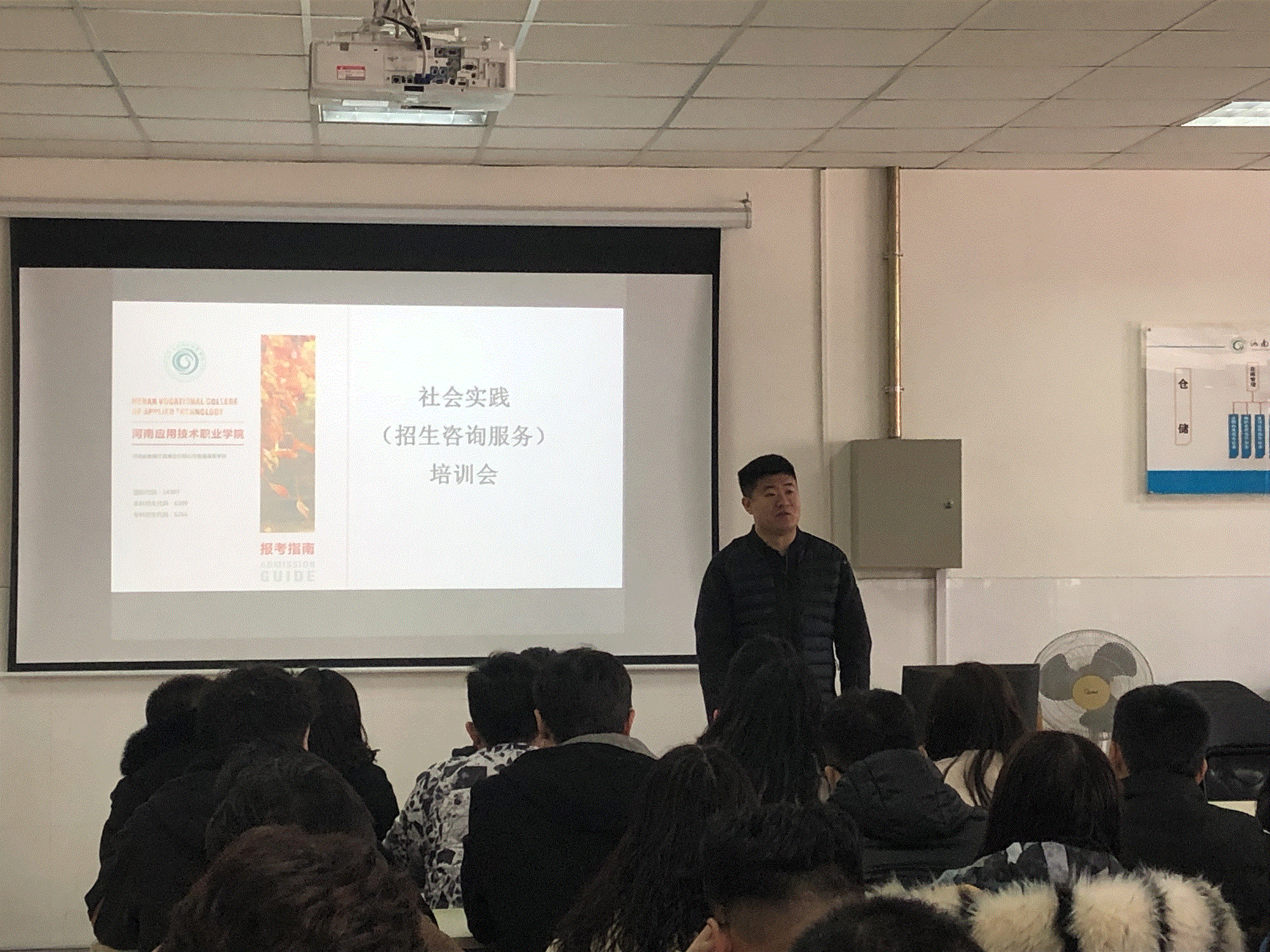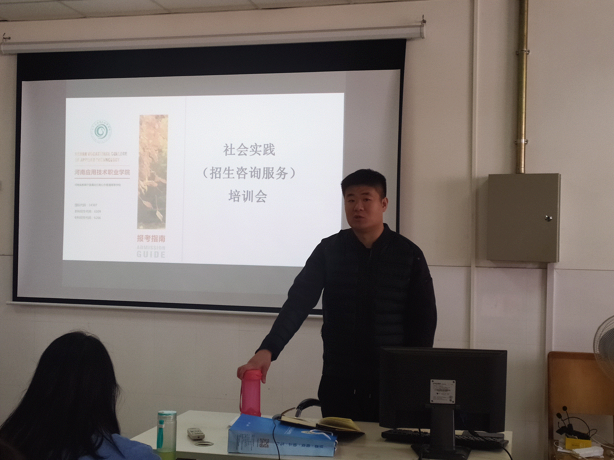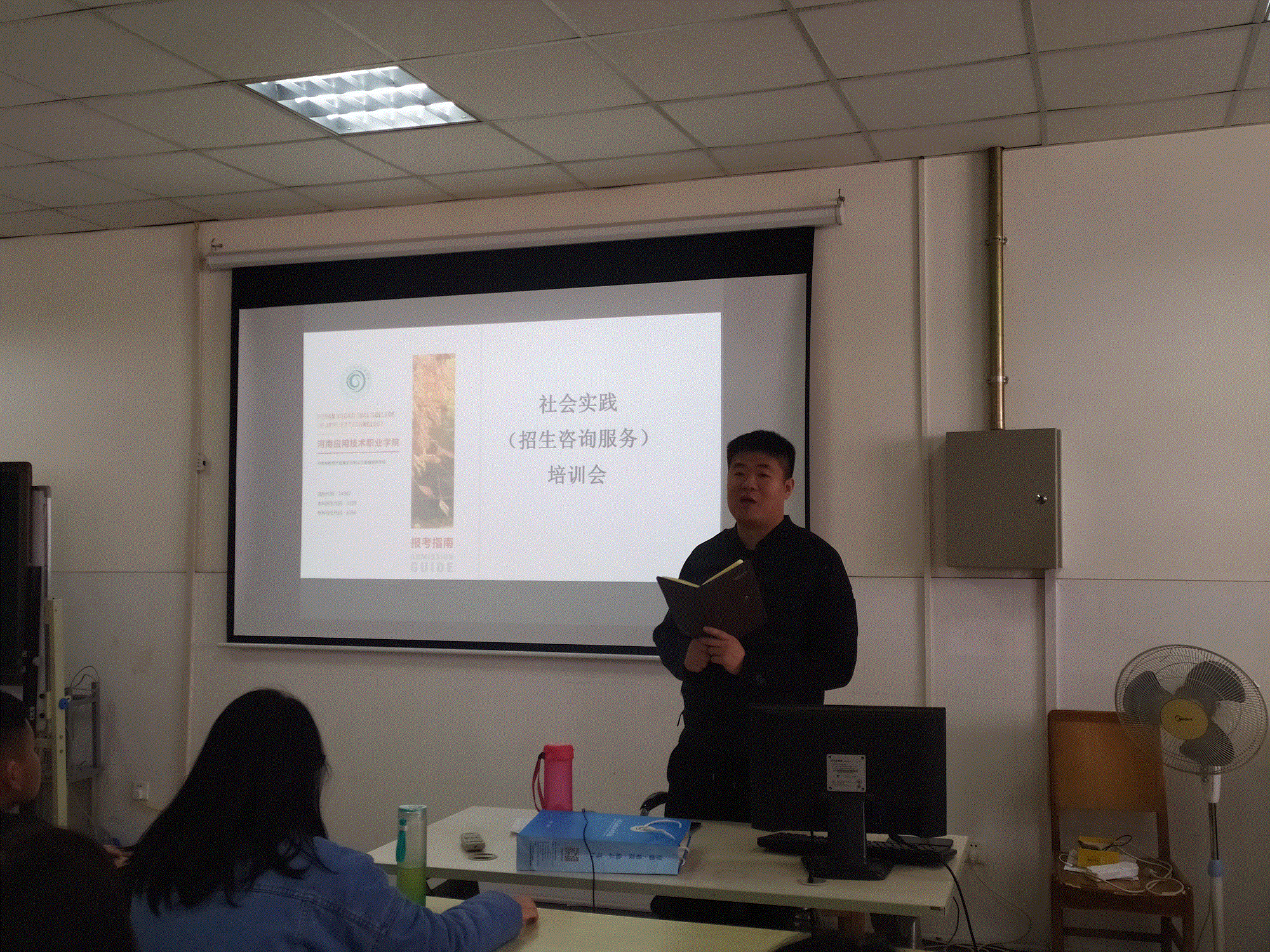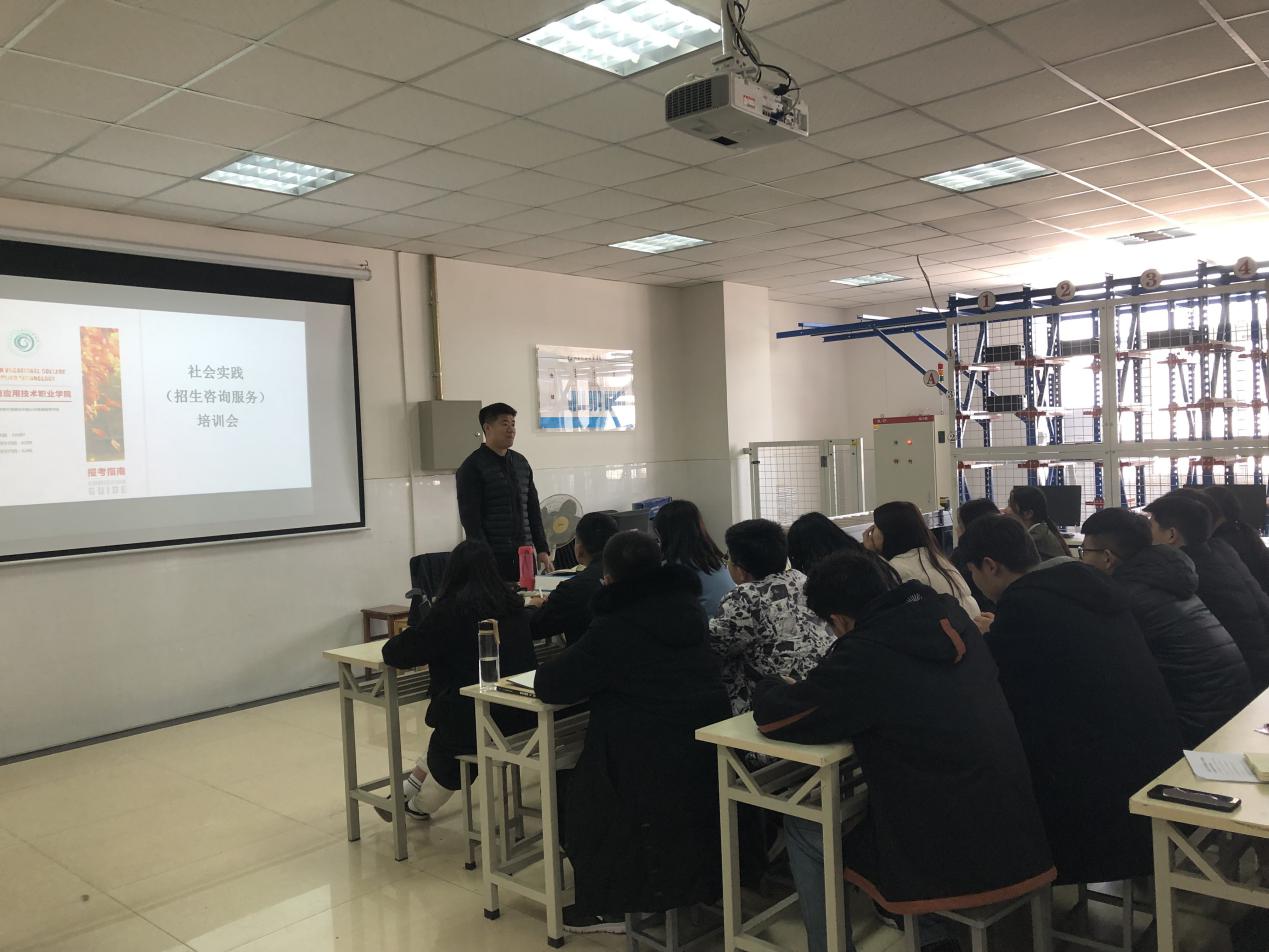 本次社会实践培训,许文广老师主要针对近期任务量比较大的学生网上咨询工作,告诉同学们如何应对考生及家长的提问,如何结合自己的专业特点营销学校,锻炼自己。