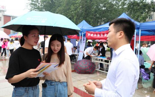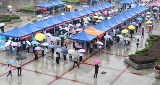 一个个企业的帐篷前渐渐排起了队,同学们认真挑选自己心仪的公司并投递简历。校园招聘风雨无阻,商贸学子热忱满满,一张张朝气的脸庞充满对未来的向往。