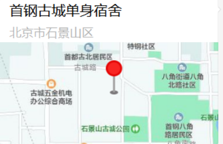 住宿地址:石景山首钢单身公寓,直线距离职场1公里。