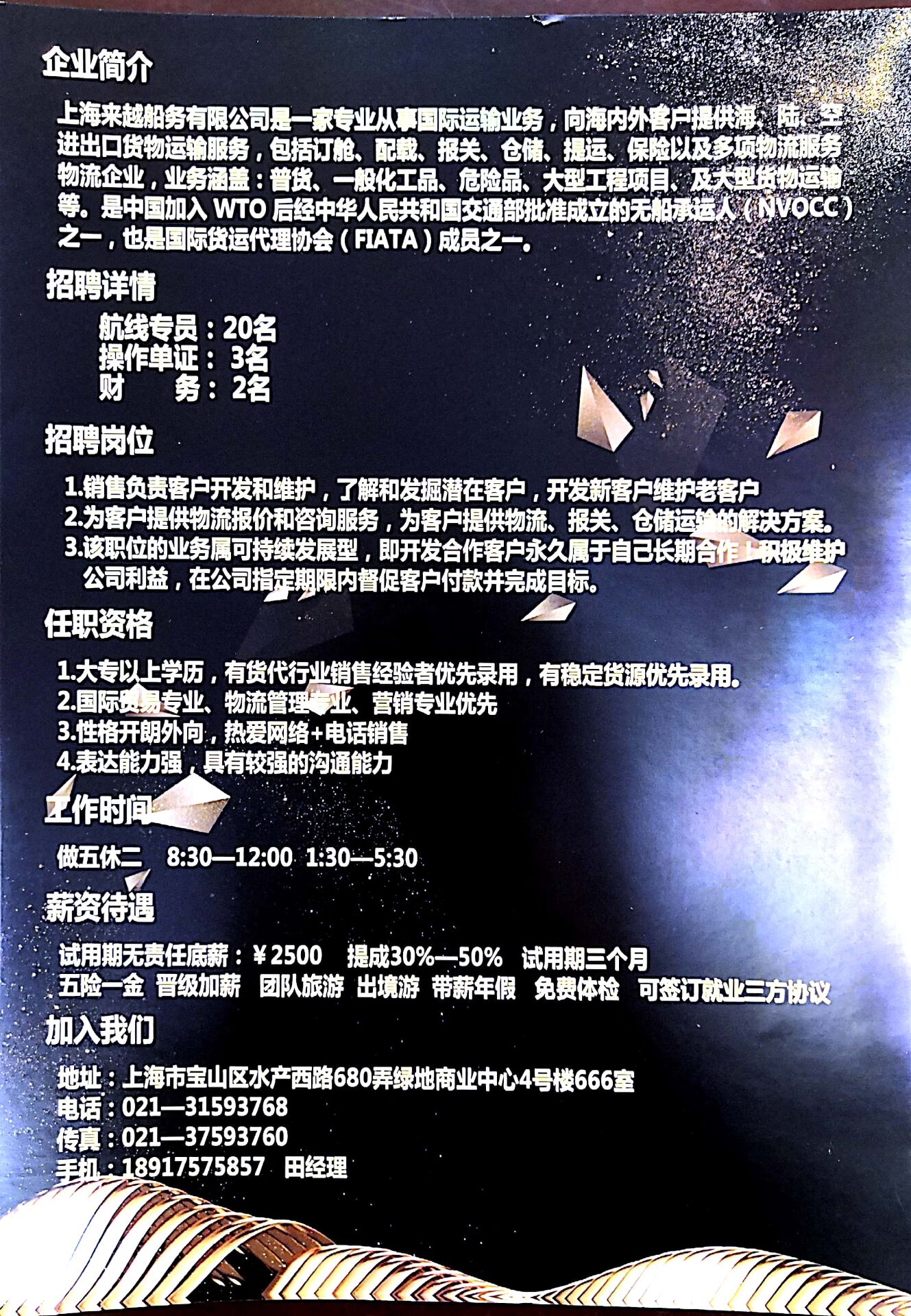 上海来越船务有限公司招聘简章