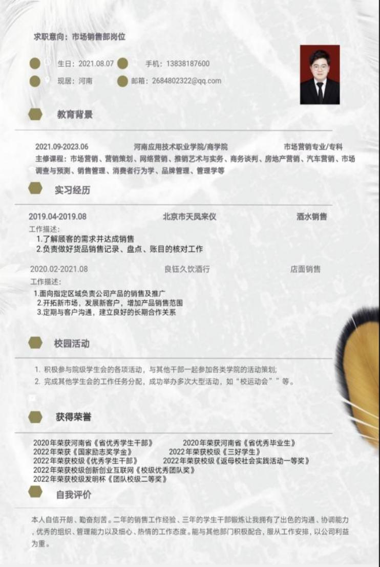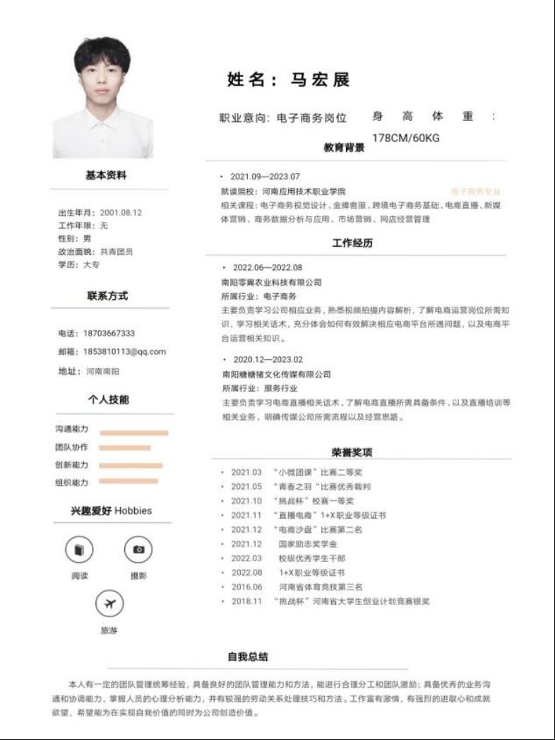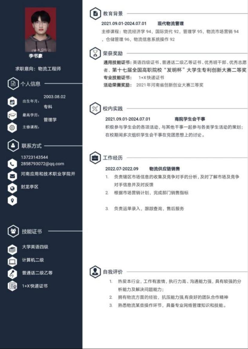 为帮助学生增强就业意识,普及就业技巧,增强就业技能,充分做好就业准备,Beat365中文官方网站举办“第六届大学生简历设计制作大赛”,通过比赛大多数同学能够掌握简历设计及撰写要领,同学们的作品外观设计巧用心思,整洁美观又能凸显专业及个人特点。让我们一起来看看部分获奖者的优秀简历吧。