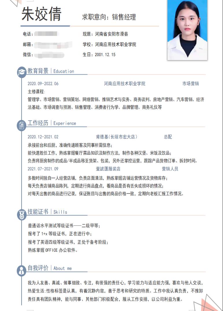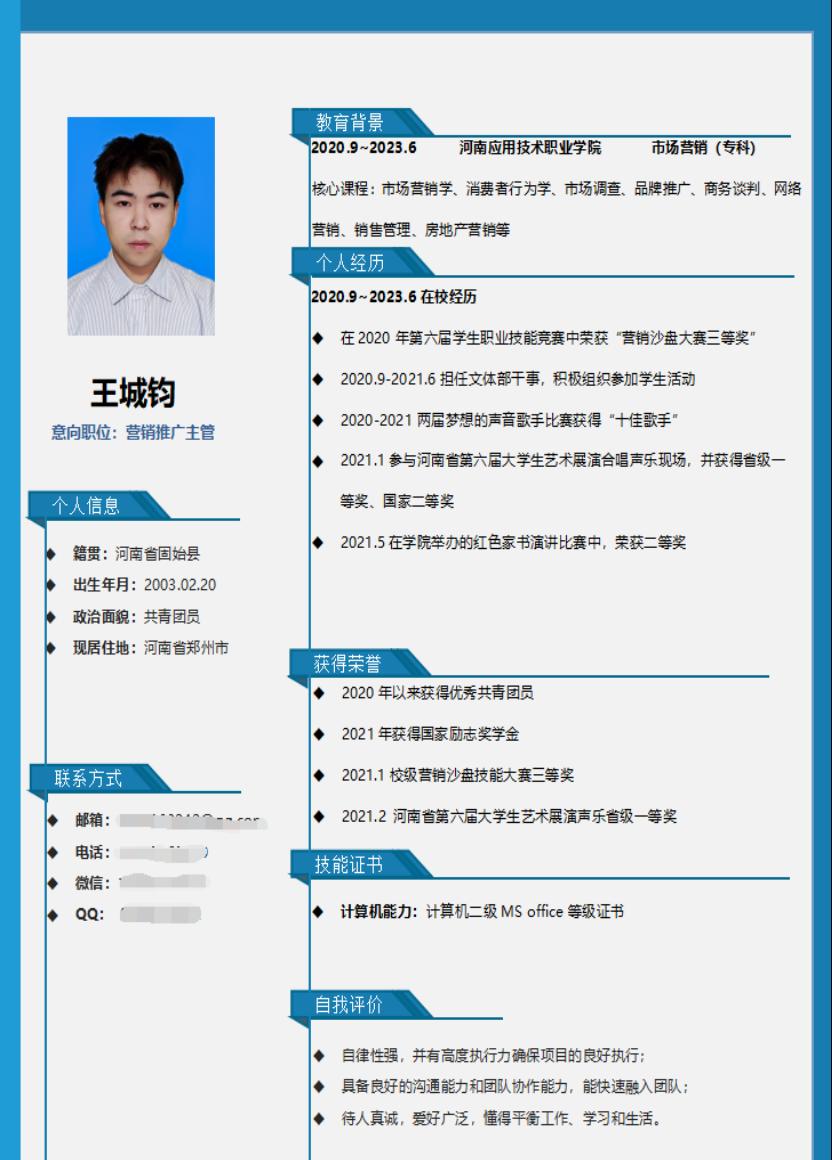 简历是展示自我的一块求职“敲门砖”,为帮助Beat365中文官方网站20级学生增强就业意识,充分做好就业准备,制作出优秀的简历并能在求职过程中成为自身的“重要法宝”。Beat365中文官方网站开展了第五届简历设计制作大赛,Beat365中文官方网站20级全体学生参与了简历制作。下面我们来共同欣赏20级求职小可爱们的优秀简历吧!