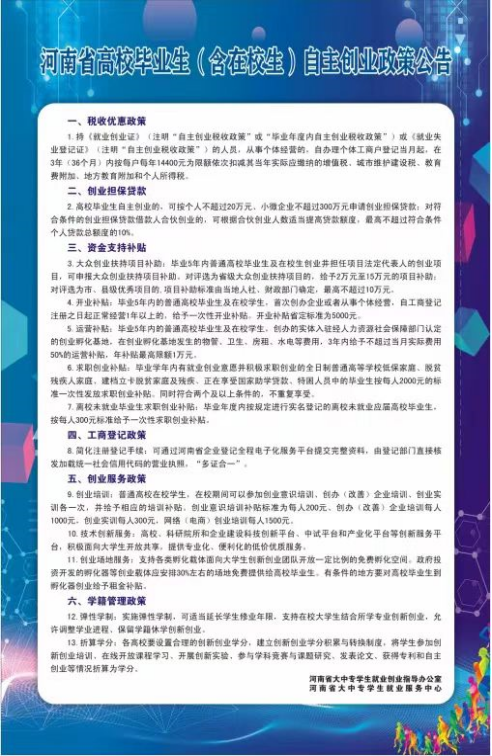 在社会竞争日益激烈的时代,大学生就业面临重重的困难,以创业带动就业,可以为毕业生创造更多机会。张天娇老师从“普通高校学生自主创业政策公告”和“河南省高校毕业生自主创业政策公告”两方面入手,通过两种政策来对比分析省内和省外的创业发展空间,为大家提供了更多的就业选择。